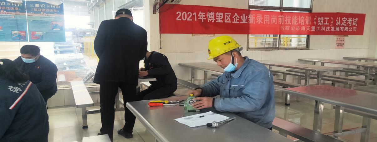 此次考試分為兩個部分,第一部分為基礎知識(理論筆試),第二部分為操作技能(現場實操)。為確保和鑒定員工技能水平的真實情況,海天科技公司邀請馬鞍山市人力資源和社會保障廳職業(yè)技能鑒定中心兩名老師到公司考試現場進行巡視指導,現場督查??荚u老師對海天科技公司的職業(yè)技能鑒定工作做出了充分肯定,對考場的組織管理、考場紀律和考生考試狀態(tài)表示滿意。